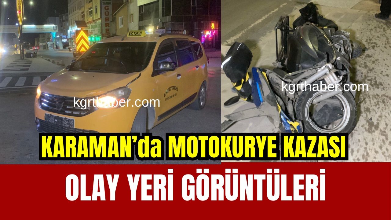 Kaza, akşam saatlerinde Hamidiye Mahallesi İbrahim Öktem Bulvarı üzerinde meydana geldi. Edinilen bilgiye göre, Arif K.(19) idaresindeki 70 ABJ 516 plakalı motosiklet ile Ali K. yönetimindeki 70 T 0009 plakalı ticari taksi çarpıştı. Çarpışmanın etkisiyle motosikletli kurye mantar dubalara çarparak orta refüje savruldu. Kazada motokurye Arif K. yaralandı. İhbar üzerine olay yerine sağlık ve polis ekibi sevk edildi. Kazada yaralanan motosikletli kurye ambulansla Karaman Eğitim ve Araştırma Hastanesi’ne kaldırılarak tedavi altına alındı. Kazaya karışan motosiklet çekici ile bulunduğu yerden kaldırıldı. Olayla ilgili tahkikat başlatıldı.