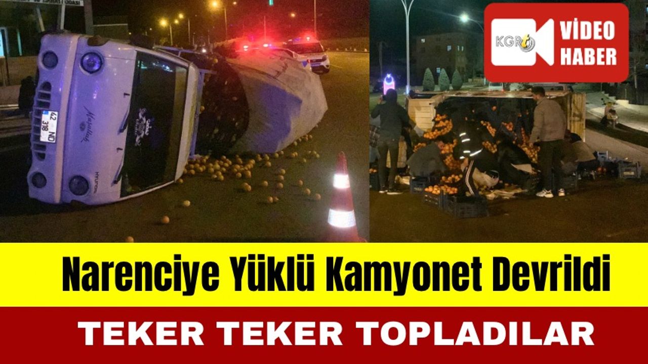 Karaman’da Valilik Kavşağı’nda Narenciye Yüklü Kamyonet Devrildi