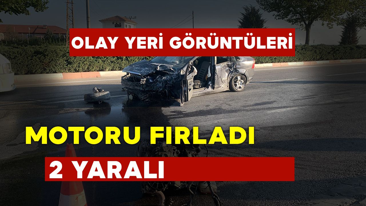 Kaza yapan otomobilin motoru fırladı: 2 yaralı OLAY YERİ GÖRÜNTÜLERİ