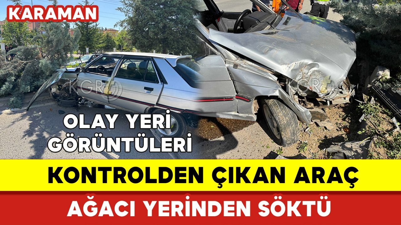Kontrolden Çıkan Araç Ağacı Yerinden Söktü Olay Yeri Görüntüleri