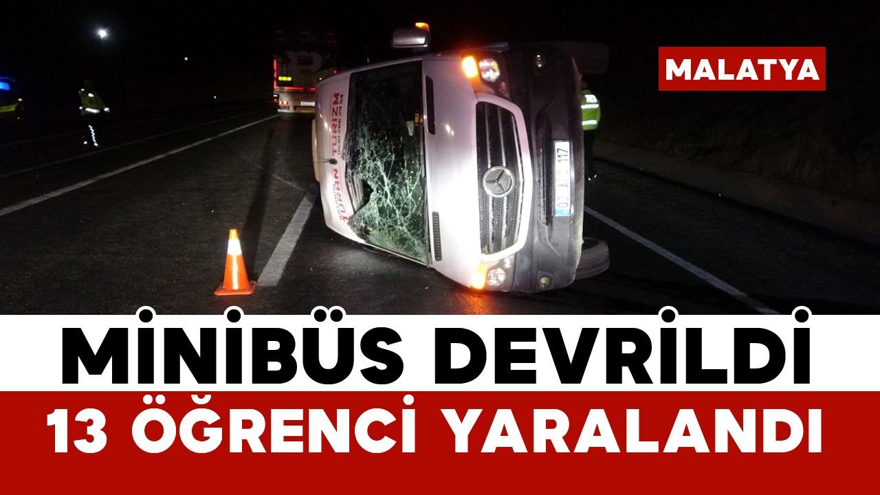 Kaza, Malatya-Adıyaman karayolu Karapınar mevkiinde meydana geldi. İddiaya göre, Adıyaman istikametine seyir halinde olan 28 AZ 683 plakalı hafif ticari araç, lastiğinin patlaması sonucu kontrolden çıkarak aynı yönde seyreden 02 AFS 117 plakalı Mercedes marka Adıyaman Turan Turizm firmasına ait tur midibüsüne çarptı. Çarpışmanın etkisiyle midibüs devrilerek yan yattı. Kazada 13’ü öğrenci 14 kişi yaralandı.