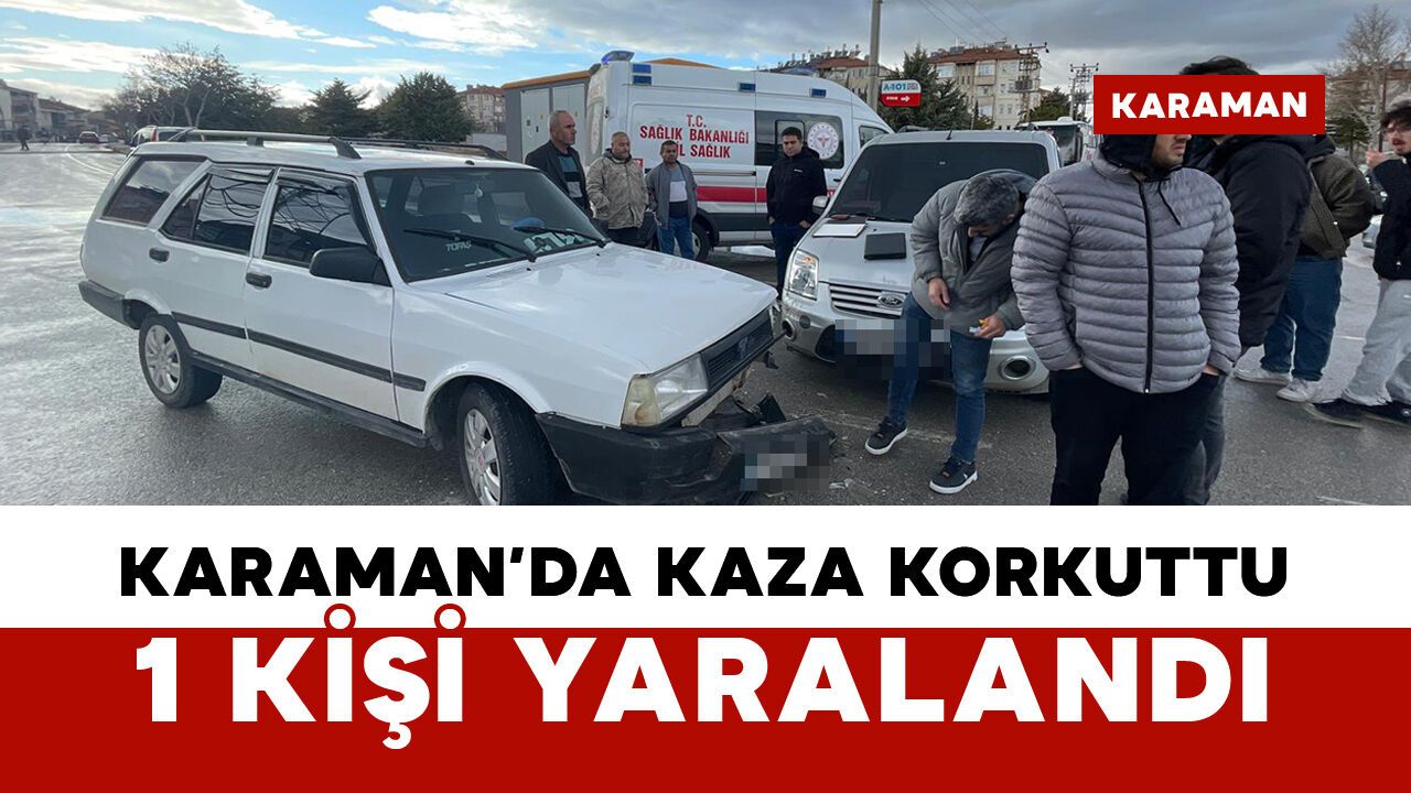 Kaza, saat 17.00 sıralarında Mümine Hatun Mahallesi Anafartalar Caddesi üzerinde bulunan kavşakta meydana geldi. Edinilen bilgiye göre, M.D. idaresindeki 33 A*U 2*4 plakalı Ford marka hafif ticari araç ile M.A. yönetimindeki 42 B 65*1 plakalı Tofaş marka otomobil çarpıştı. Kazada, hafif ticari araçta yolcu konumunda bulunan bir kişi yaralandı. İhbar üzerine olay yerine sağlık ve polis ekipleri sevk edildi. Yaralı şahıs, olay yerinde yapılan ilk müdahalenin ardından ambulansla Karaman Eğitim ve Araştırma Hastanesi’ne kaldırılarak tedavi altına alındı. Kazayla ilgili tahkikat başlatıldı.