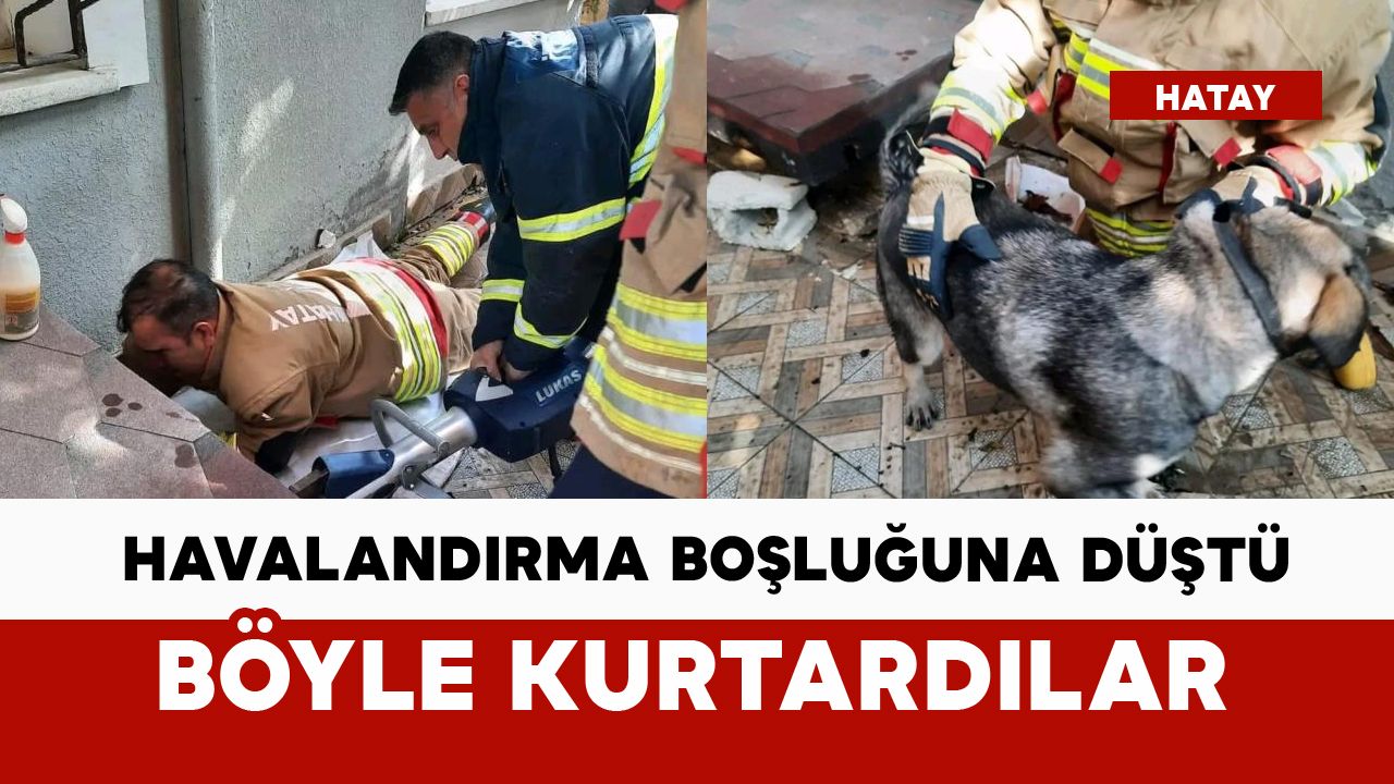 Defne ilçesi Aşağıokçular Mahallesi’nde bulunan binanın havalandırma boşluğuna köpek düştü. Havalandırma boşluğunda mahsur kalan köpeğin havlamasını duyan vatandaşların durumu 112 Acil Çağrı Merkezi’ne bildirilmesi üzerine olay yerine itfaiye ekipleri sevk edildi. Kısa sürede bölgeye gelen Hatay Büyükşehir Belediyesine bağlı itfaiye ekipleri, havalandırma boşluğundaki köpeğe müdahale ederek kurtardı. Kurtarılan köpek, doğal yaşam alanına bırakıldı.
