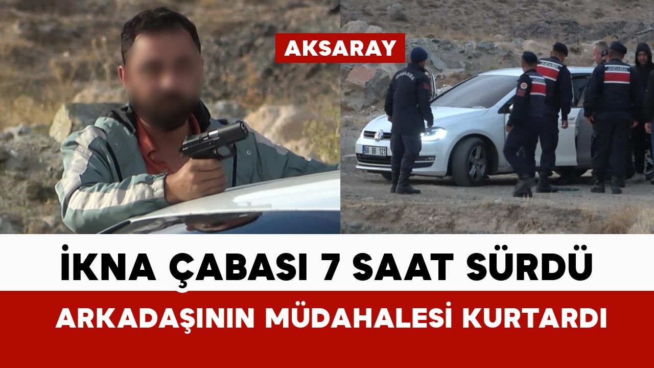 Olay, Aksaray’ın merkeze bağlı Gücünkaya Köyü Mamasın Barajı yakınlarındaki boş arazide yaşandı. Edinilen bilgiye göre, abisiyle sorunlar yaşayan L.G. (34) girdiği bunalım sonucu eline geçirdiği tabancayla 68 BB 121 plakalı aracına binerek Mamasın Barajı çevresine gitti. Burada arkadaşlarını arayarak intihar edeceğini söylemesi üzerine arkadaşları durumu hemen 112 Acil Çağrı Merkezine bildirdi. İhbar üzerine polis ekipleri alarma geçerek araç ve şahıs çerçevesinde araştırma başlattı. Yapılan araştırmalarda emniyetin plaka tanıma sisteminden aracın Mamasın Barajı istikametine geçtiği görülmesi üzerine polis ekipleri baraj ve çevresinde arama tarama çalışması yaptı. Yapılan çalışmalarda araç kısa sürede arazide bulundu. Ancak şahıs ilk etapta elindeki tabancayı kafasına dayayarak yanına kimseyi yanaştırmadı.