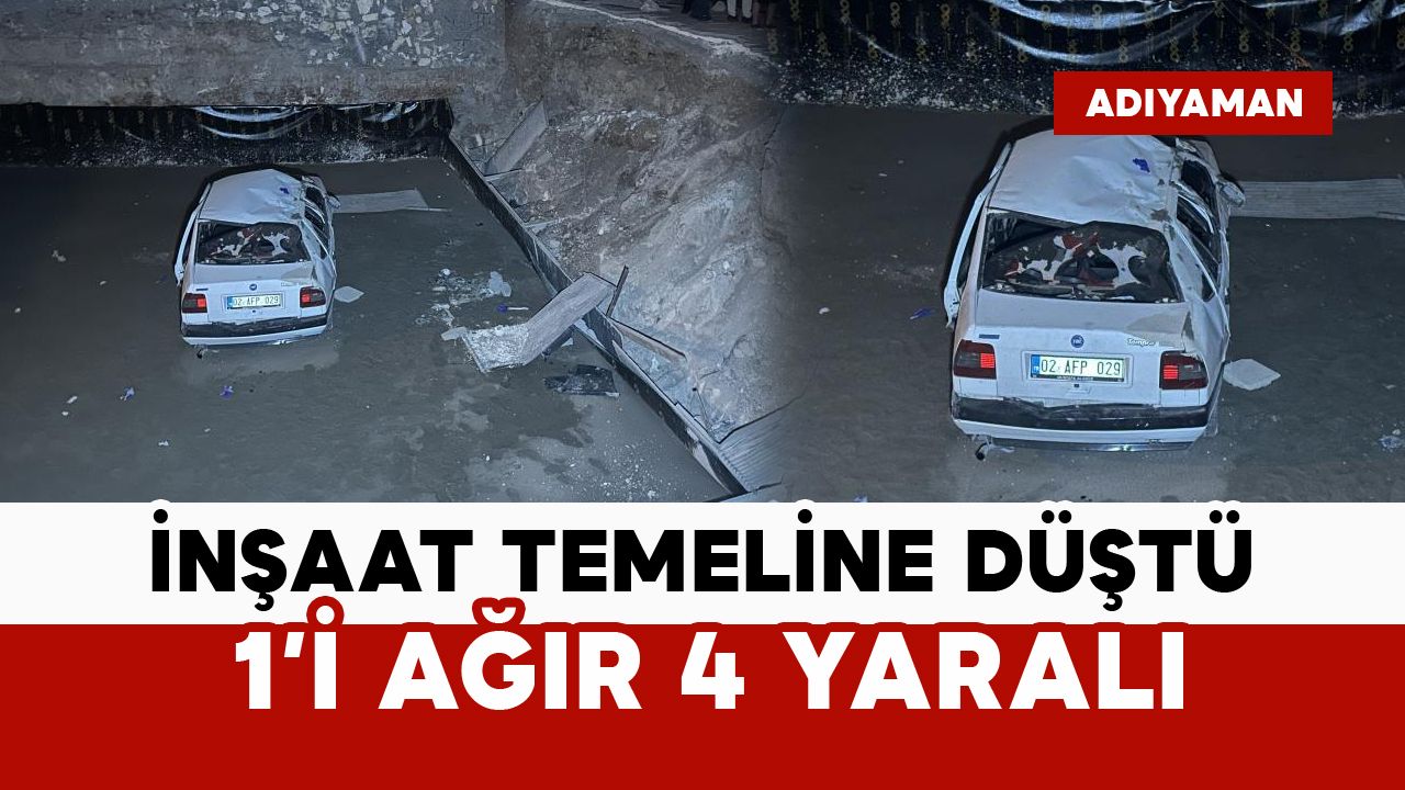 Edinilen bilgilere göre, sürücüsü belirlenemeyen 02 AFP 029 plakalı otomobil, Adıyaman merkez Turgutreis Mahallesi Eski Zey Caddesi üzerinde sürücüsünün direksiyon hakimiyetini kaybetmesi sonucu yol kenarında bulunan bir inşaatın temeline düştü. Yaklaşık 4 metre yükseklikten düşen otomobilde bulunan Mehmet T., Muhammet Fatih İ., Ramazan Samet Ö. ve Ramazan T. yaralandı. İhbar üzerine olay yerine sağlık, itfaiye, AFAD ve polis ekipleri sevk edildi. Olay yerine gelen ekipler, araçta sıkışan yaralıları çıkartarak sağlık ekiplerine teslim etti. Yaralılar, yapılan ilk müdahalenin ardından ambulanslarla Adıyaman Eğitim ve Araştırma Hastanesi’ne kaldırıldı. Hastanede tedavi altına alınan yaralılardan Mehmet T.’nin sağlık durumunun ağır olduğu öğrenildi.