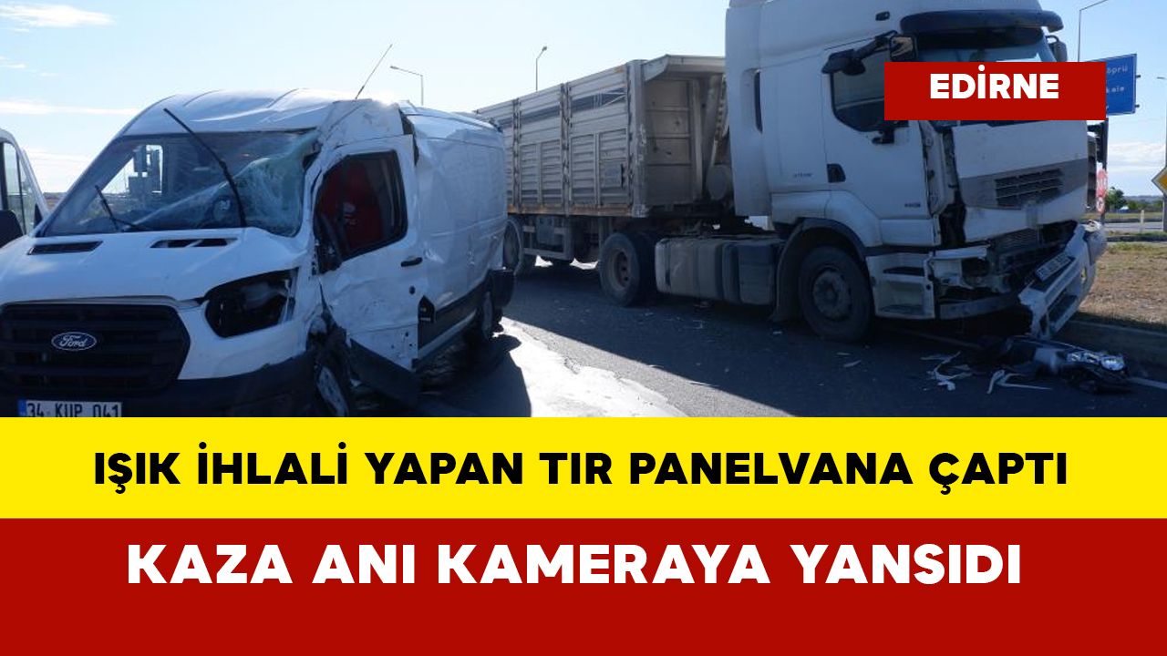 Edirne'nin Havsa ilçesinde ışıklı kavşakta tır ile panelvan çarpıştı. Kazada panelvanın sürücüsü yaralandı. Yaralı sürücü olay yerine sevk edilen ambulansla hastaneye kaldırıldı. Kaza anı güvenlik kamerasına saniye saniye yansıdı.