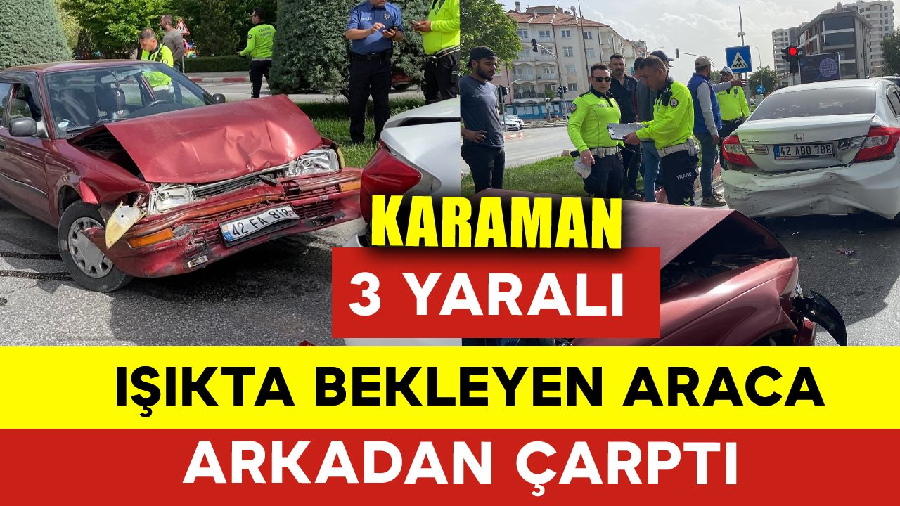 Kaza, Karaman’da öğle saatlerinde Nefise Sultan mahallesi Atatürk Caddesi’nde meydana geldi. İddiaya göre A.R. yönetimindeki 42 FA 818 plakalı otomobil kırmızı ışıkta bekleyen Y.Y. yönetimindeki 42 ABB 788 plakalı otomobile arkadan çarptı. İhbar üzerine olay yerine sağlık ve polis ekibi sevk edilirken kazada 42 ABB 788 plakalı otomobilde bulunan F.Y., K.Y ve N.Y. yaralandı. Çevredeki vatandaşların yardımı ile yaralılar ambulansla Karaman Eğitim ve Araştırma Hastanesi’ne sevk edildi. Kaza sebebiyle Atatürk Caddesi’nde meydana gelen trafik yoğunluğunu azaltmak için trafik polis ekipleri sürücüleri yönlendirerek kontrollü geçiş sağlarken yaralıların durumunun iyi olduğu bildirildi.