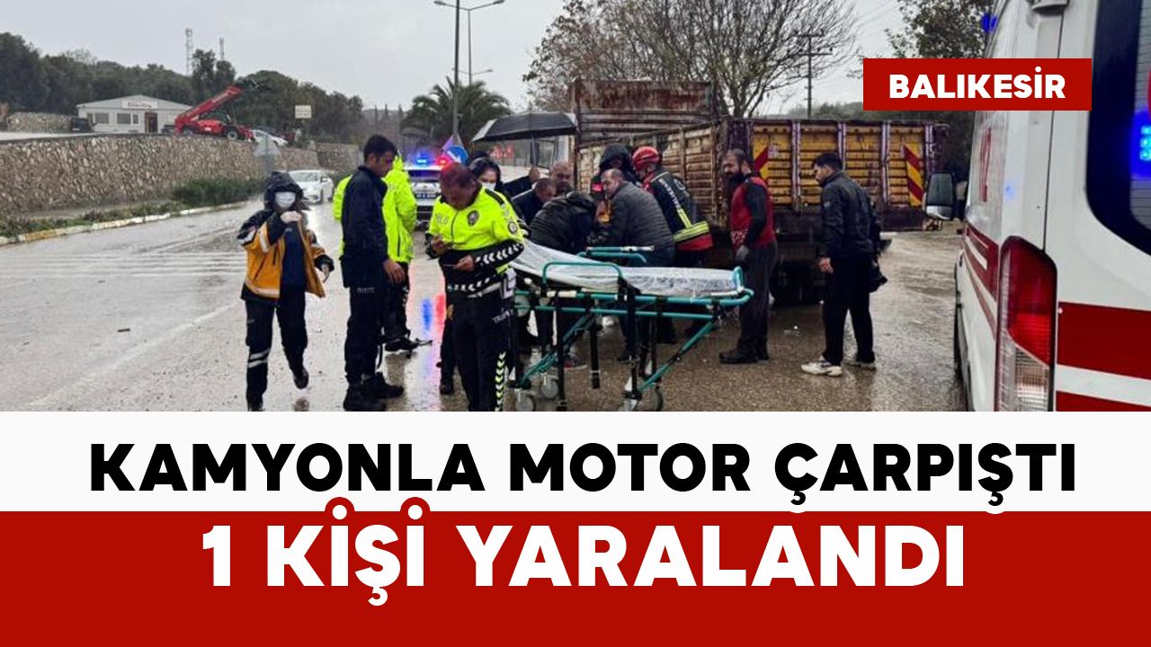 Edinilen bilgiye göre, Batuhan Ş. yönetimindeki 10 AJG 501 plakalı motosiklet ile 10 E 1370 plakalı kamyon, Erdek girişinde akaryakıt istasyonu önünde çarpıştı. Kazada motosiklet sürücüsü Batuhan Ş. yaralandı.