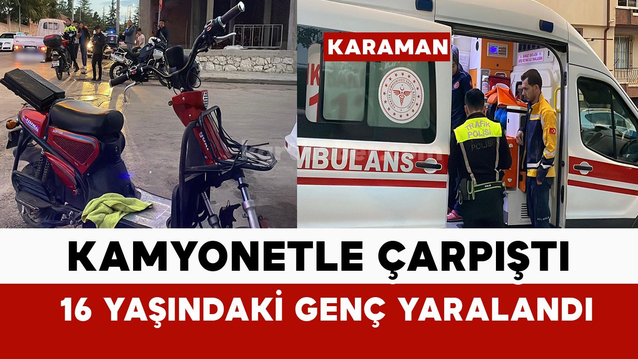 Kaza, 18.30 sıralarında Mahmudiye Mahallesi Fevzi Paşa Caddesi üzerinde meydana geldi. Edinilen bilgiye göre, M.Y. (20) idaresindeki 70 A*T 5*4 plakalı Hyundai marka kamyonetle O.G. (16) yönetimindeki elektrikli bisiklet kavşakta çarpıştı. Çarpışmanın etkisiyle savrulan elektrikli bisiklet sürücüsü O.G. yaralandı. İhbar üzerine adrese sağlık ve polis ekipleri sevk edildi. Kazada yaralanan O.G. ambulansla Karaman Eğitim ve Araştırma Hastanesi’ne kaldırılarak tedavi altına alındı. Kazayla ilgili tahkikat başlatıldı.