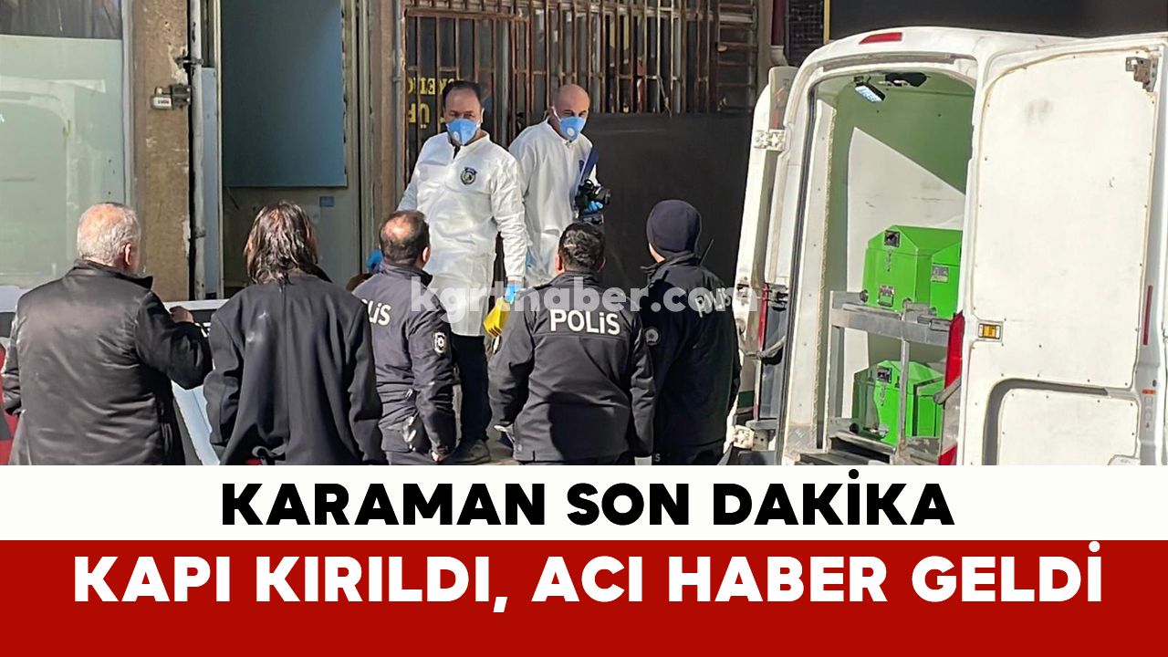 Kapının açılarak içeri girilmesiyle, evde yalnız yaşadığı öğrenilen 55 yaşındaki Vehbi G. hareketsiz halde bulundu. Sağlık ekiplerinin yaptığı kontrolde şahsın hayatını kaybettiği belirlenirken olay yerine gelen polis ekipleri çevrede güvenlik önlemi aldı. Şahsın cenazesi kesin ölüm sebebinin belirlenmesi amacıyla nöbetçi savcının talimatıyla Karaman Eğitim ve Araştırma Hastanesi morguna kaldırıldı.