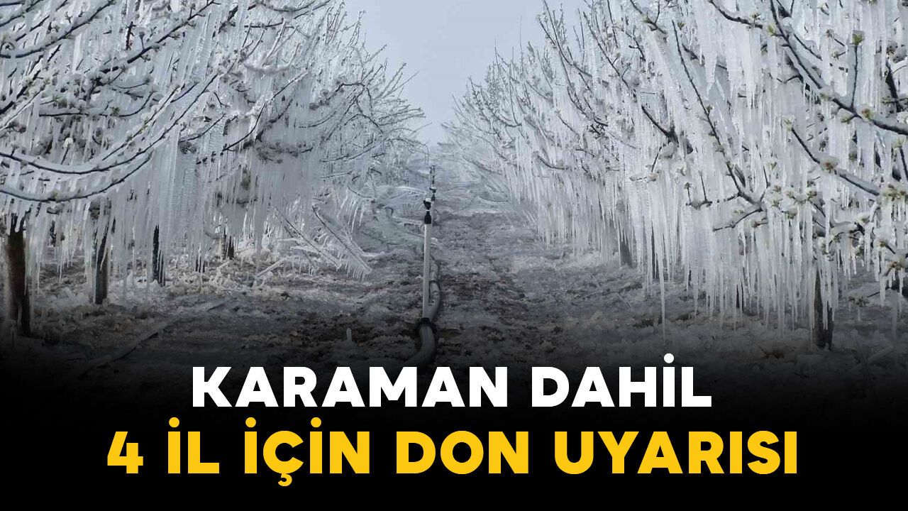 Yapılan son değerlendirmelere göre; hava sıcaklıklarındaki düşüşe bağlı olarak salı gününü çarşamba gününe bağlayan geceden itibaren Karaman, Konya, Aksaray ve Niğde genelinde hafif ve yer yer orta kuvvete zirai don riski bekleniyor. 8 Nisan 2026 saat 00.00’da başlaması öngörülen zirai don riskinin, 11 Nisan Cumartesi günü saat 09.00’a kadar devam etmesi tahmin ediliyor.