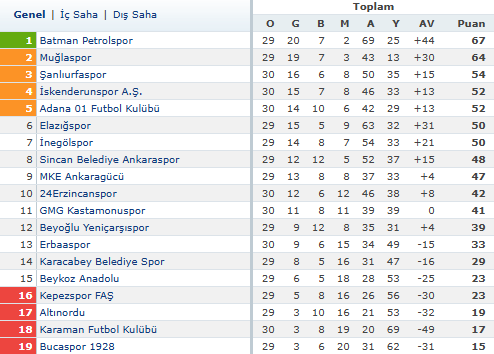 Beyaz Grup’ta 67 puanla Batman Petrol Spor A.Ş. liderliğini sürdürürken, Muğlaspor Kulübü 64 puanla ikinci, Kızılkaya Tarım Şanlıurfaspor ise 54 puanla üçüncü sırada yer alıyor. Temsilcimiz Karaman FK ise 17 puanla 18’inci sırada bulunarak düşme hattındaki yerini korudu.