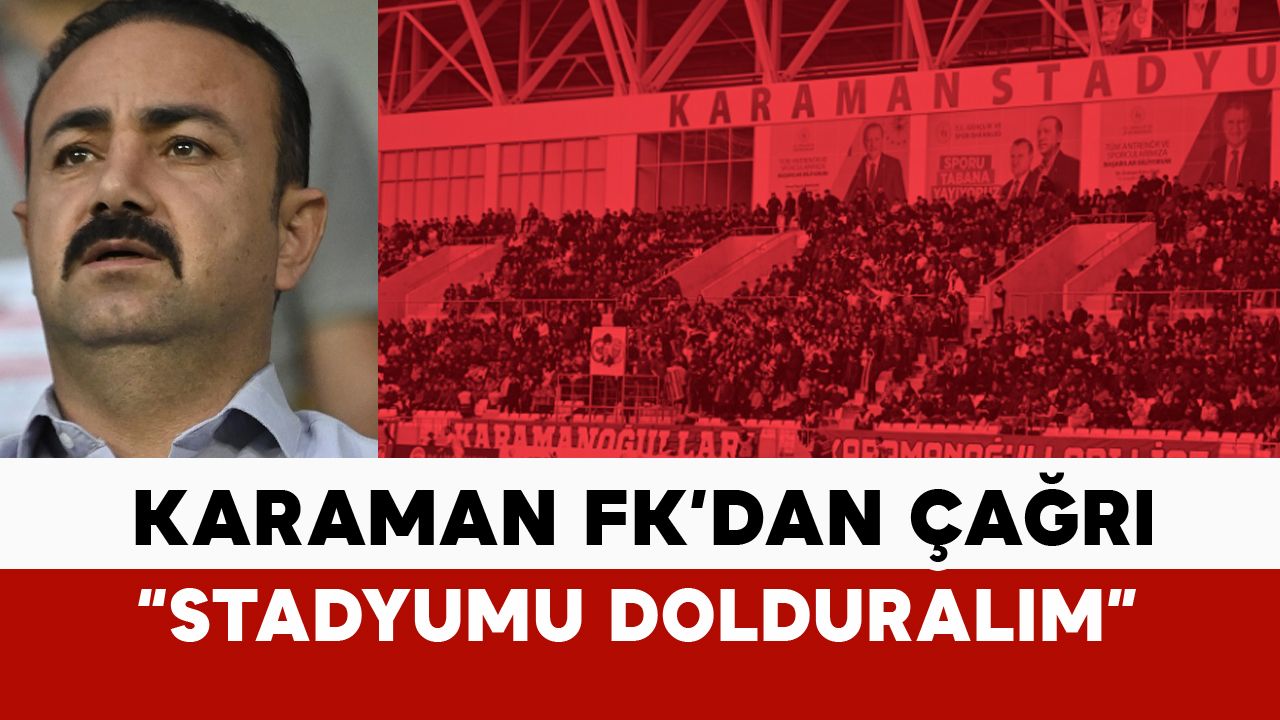 Karaman Futbol Kulübü Başkanı Mesut Soyfidan, bugün oynanacak Karaman FK – MKE Ankaragücü karşılaşması öncesinde tüm Karamanlıları stadyuma davet etti. Soyfidan, yaptığı açıklamada, “Bugün saat 16.00’da MKE Ankaragücü ile oynayacağımız maça tüm hemşerilerimizi davet ediyorum. Şehrimizin tek sosyal etkinlik alanı olan Karaman Stadyumu’nu bu kritik karşılaşmada hep birlikte dolduralım.” ifadelerini kullandı.