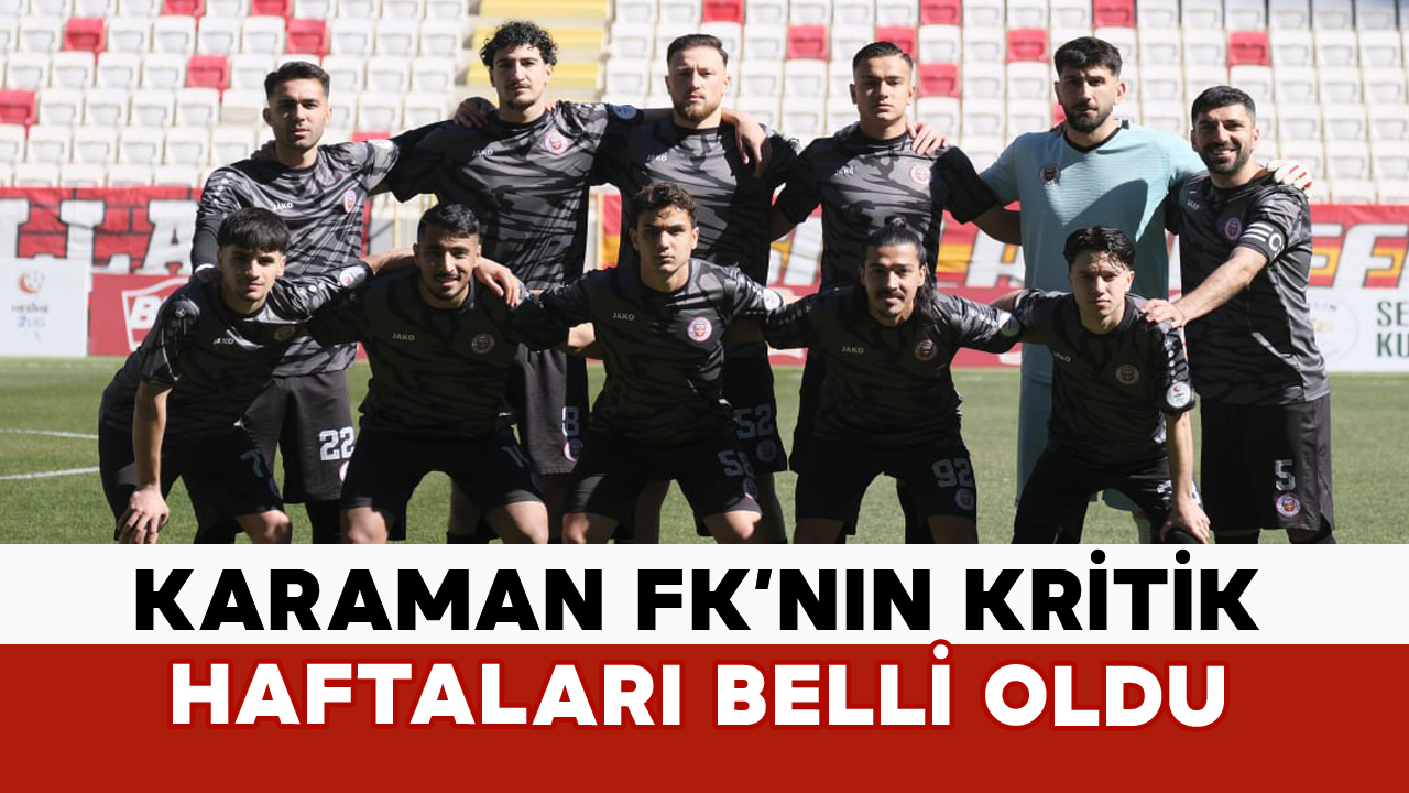 Karaman FK, sezonun son haftalarında hem iç sahada hem deplasmanda kritik karşılaşmalara çıkacak. Özellikle doğrudan rakiplerle oynanacak mücadeleler, ligde kalma adına büyük önem taşıyor.