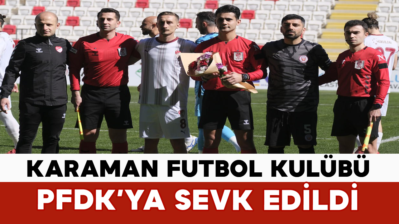 Karaman Futbol Kulübü, 22 Şubat 2026 tarihinde oynanan Karaman FK – SEZA Çimento Elazığspor müsabakasında “talimatlara aykırı hareketi” nedeniyle Futbol Disiplin Talimatı’nın 46. maddesi ve 2025-2026 Sezonu TFF 2. Lig Müsabakaları Statüsü’nün 9/2 maddesi uyarınca PFDK’ya sevk edildi. Kulüp, önümüzdeki günlerde kurulun alacağı kararları bekleyecek.