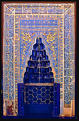 Ana eyvanın duvarında yeşil ve lacivert renkli çiniler kullanılmış, mihrabında ise altın yaldızın da yer aldığı zengin renkler tercih edilmiştir. Bu mihrabın Konya’daki Karamanoğlu eserleriyle ve Bursa-Edinburg’daki erken Osmanlı dönemi çinileriyle benzerlikler taşıdığı belirtilmektedir.