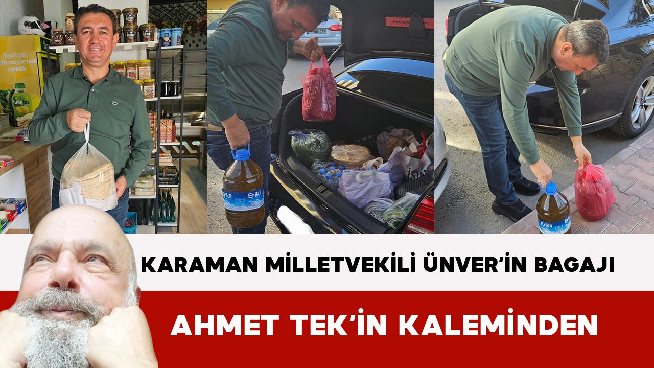 Milletvekili Ünver’i kutluyorum. Memleketinden Ankara’ya götürdüğü ürünleri paylaşmakta sakınca görmemiş. Herkes gibi, Karaman’dan alınabilecek yiyecekleri almış.