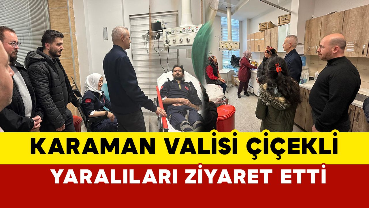 Karaman Valisi Mehmet Fatih Çiçekli, hasta taşıyan ambulansın otomobille çarpışarak devrilmesi sonucu, 3 sağlık görevlisi ile birlikte 5 kişinin yaralandığı trafik kazası sonrası yaralanarak Karaman Eğitim ve Araştırma Hastanesi’nde tedavi altına alınan sağlık görevlileri ve vatandaşları ziyaret etti. Doktorlardan yaralıların sağlık durumu hakkında bilgi alan Vali Çiçekli, sağlık görevlilerine ve vatandaşlara geçmiş olsun dileklerini ileterek acil şifalar diledi. Ziyarette Vali Yardımcısı Esengül Korkmaz Çiçekli, İl Sağlık Müdürü Uzm. Dr. Mehmet Serkan Yurdakul, Karaman Eğitim ve Araştırma Hastanesi Başhekimi Prof. Dr. Ercan Erdoğan hazır bulundu.