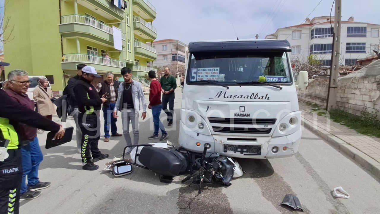Kaza, ikindi saatlerinde Osmangazi Mahallesi 1063. Sokak üzerinde meydana geldi. Edinilen bilgiye göre, Hasan Ç. yönetimindeki 70 M 01*2 plakalı yolcu minibüsü ile Hasan C. (12) idaresindeki plakasız elektrikli motosiklet çarpıştı. Çarpışmanın etkisiyle yaklaşık 10 metre sürüklenen elektrikli motosiklet minibüsün altında kalırken, motosiklette bulunan Hasan C. ile Muhammed Furkan D. (16) ağır yaralandı.
