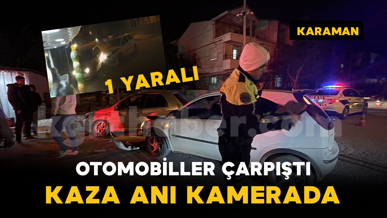 Kaza, akşam saat 22.30 sıralarında Yunuskent Mahallesi Seyit Onbaşı Caddesi üzerinde bulunan kavşakta meydana geldi. Edinilen bilgiye göre, Bekir G. idaresindeki 01 Z* 2*4 plakalı Opel marka otomobil ile Özgür İ. yönetimindeki 42 E 1*95 plakalı Fiat marka otomobil kavşakta çarpıştı. Kazada Fiat marka otomobilin sürücüsü Özgür İ. yaralandı. İhbar üzerine olay yerine sağlık ve polis ekipleri sevk edildi. Yaralı sürücü, olay yerinde yapılan ilk müdahalesinin ardından ambulansla Karaman Eğitim ve Araştırma Hastanesi’ne kaldırılarak tedavi altına alındı. Kazaya karışan araçlar çekiciyle yoldan kaldırıldı. Kaza anı ise güvenlik kamerasına saniye saniye yansıdı. Güvenlik kamerasına yansıyan görüntülerde, iki otomobilin çarpıştığı görülüyor.