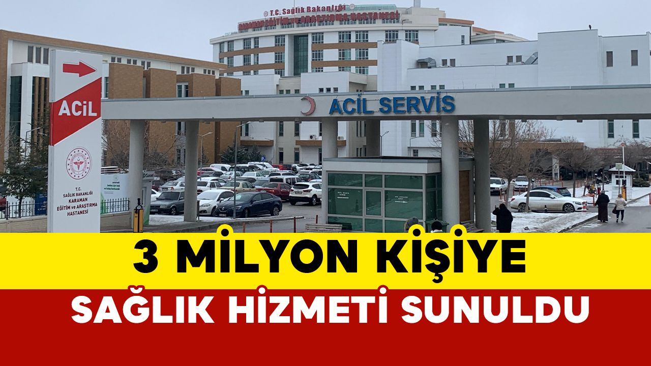 Kamu hastanelerinde (2. ve 3. basamak) 1,5 milyon hastaya sağlık hizmeti sunuldu. Bu hastaların 500 bini acil servislerde, yaklaşık 1 milyonu ise polikliniklerde tedavi edildi. Ayrıca, Nükleer Tıp Merkezi’nin faaliyete geçmesiyle birlikte, il dışına sevk edilmesi gereken 1.500 işlem Karaman'da gerçekleştirildi.