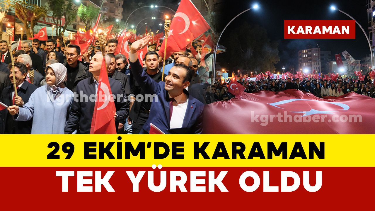 Karaman’da 29 Ekim Cumhuriyet Bayramı dolayısıyla düzenlenen Fener Alayı ve Şehitlerimize Saygı yürüyüşüne yoğun katılımla gerçekleştirildi. Karaman Aktekke 15 Temmuz Demokrasi Meydanı’nda bir araya gelen vatandaşlar, ellerindeki Türk bayrakları ve meşalelerle yürüyüşe geçti. Karaman Valisi Mehmet Fatih Çiçekli, AK Parti Karaman Milletvekili Osman Sağlam, CHP Karaman Milletvekili İsmail Atakan Ünver, Karaman Belediye Başkanı Savaş Kalaycı, Karamanoğlu Mehmetbey Üniversitesi Rektörü Mehmet Gavgalı, İl Emniyet Müdürü Mehmet Turhan, İl Jandarma Komutanı Kıdemli Albay Osman Saygılı’nın da katıldığı fener alayı yürüyüşü başladığı Aktekke 15 Temmuz Demokrasi Meydanı’nda tamamlandı.
