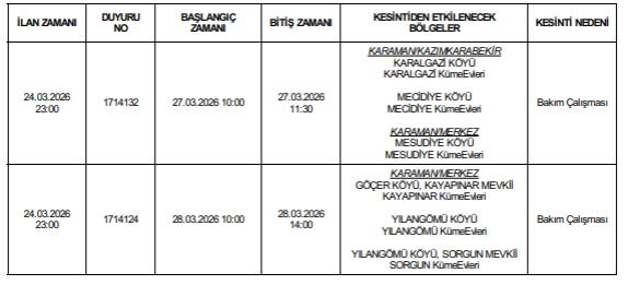 3. Jeneratör kulanan müşterilerimizin ve Elektrik Dağıtım şebekesi aracılığı ile satış yapan Elektrik enerjisi üreticilerinin kesinti süresi boyunca İş kazalarına mahal verilmemesi adına Dağıtım Şebekesi Anahtarlama elemanlarının açık olduğunu mutlaka kontrol etmeleri hususunda uyardı.