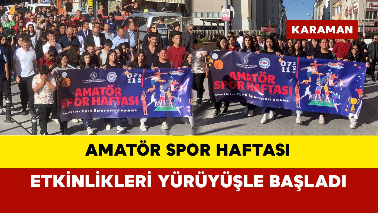 Amatör Spor Haftası kapsamında yürüyüş düzenlendi. Gençlik ve Spor Bakanlığı, Spor Genel Müdürlüğü ile Amatör Spor Kulüpleri Konfederasyonu tarafından her yıl ortaklaşa çeşitli etkinliklerle kutlanan Amatör Spor Haftası, 7-11 Ekim arasında çeşitli etlinliklerle kutlanacak. Karaman’da düzenlenen etkinlikte Karaman Gençlik Spor İl Müdürlüğü binası önünden Karaman Aktekke 15 Temmuz Demokrasi Meydanı’na kadar yürüyüş yapıldı. Etkinliğe sporcular ve öğrenciler katılım sağladı.