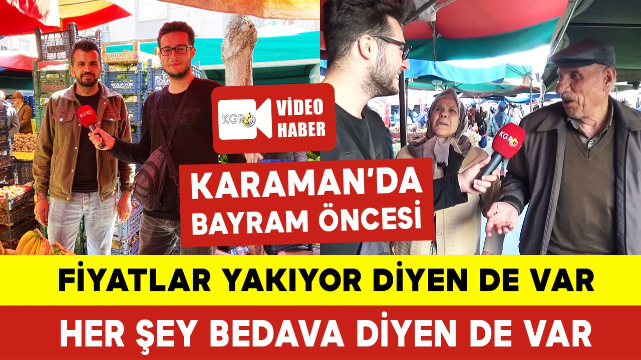 Karaman’da Ramazan Bayramı’nın yaklaşması ile birlikte vatandaşlar semt pazarlarına akın etmeye başladı. Pazar esnaflarından Ahmet Coşar: "Bayram, vatana ve millete hayırlı olsun. Satışlarımızı yapıyoruz. Pazarda bayram öncesi durum fena değil. Salatalık, patlıcan ve domates fiyatlarında düşüş var, ancak domatesin ateşi henüz sönmedi. Diğer ürün çeşitlerinde de fiyatlarda biraz düşüş var ama müşterilerin alışverişi iyi. Tüm Türk milletinin bayramını kutlarım." dedi.