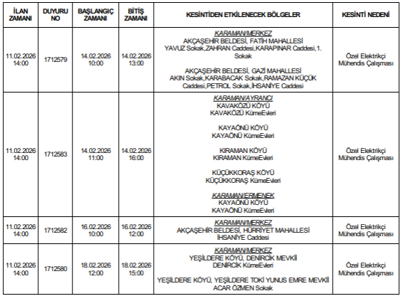 3. Jeneratör kulanan müşterilerimizin ve Elektrik Dağıtım şebekesi aracılığı ile satış yapan Elektrik enerjisi üreticilerinin kesinti süresi boyunca İş kazalarına mahal verilmemesi adına Dağıtım Şebekesi Anahtarlama elemanlarının açık olduğunu mutlaka kontrol etmeleri hususunda uyardı.