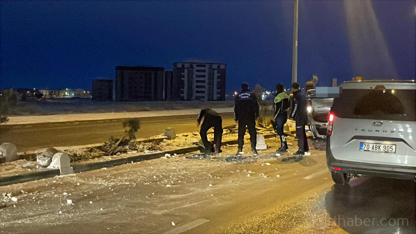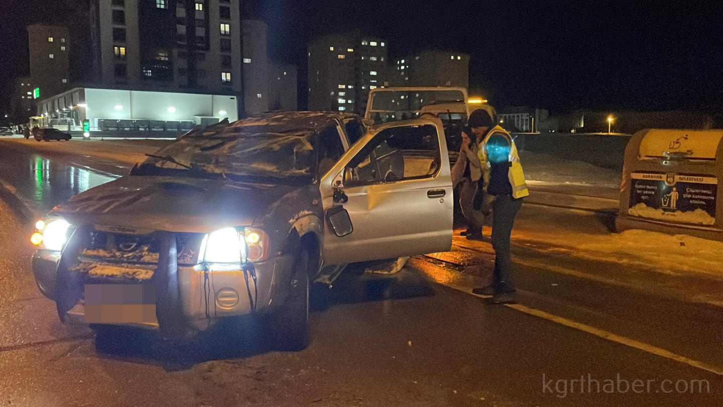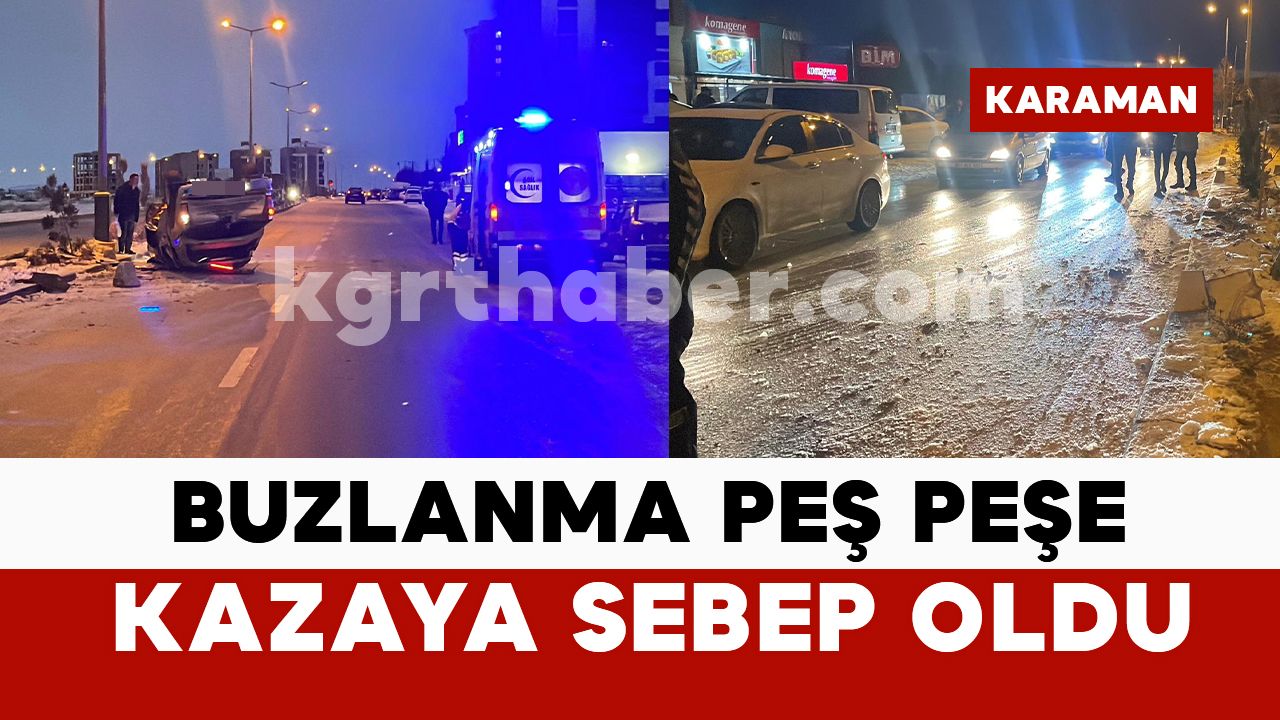 Kaza, saat 18.10 sıralarında Elmaşehir Mahallesi Şehit Hamza Çetin Bulvarı üzerinde meydana geldi. Edinilen bilgiye göre, M.A.Ö. idaresindeki 70 E* 4*9 plakalı Nissan marka pikap buzlanma sonucu kayganlaşan yolda kontrolden çıktı ve rüfüje çarparak takla attı. Kazada pikap sürücüsü M.A.Ö. ile araçta bulunan A.G. yaralandı. Kazadan dakikalar sonra ise bir başka otomobil kayganlaşan yolda kontrolden çıkarak park halindeki 3 araca çarparak durabildi. İhbar üzerine adrese sağlık ve polis ekipleri sevk edildi. Polis ekipleri yolda güvenlik önlemi alırken, belediye ekipleri yolda solüsyon çalışması yaptı. Kazada yaralananlar ambulanslarla Karaman Eğitim ve Araştırma Hastanesi’ne kaldırılarak tedavi altına alındı. Polisin kaza yerindeki incelemesinin ardından takla atan pikap çekiciyle yoldan kaldırıldı. Kazayla ilgili tahkikat başlatıldı.