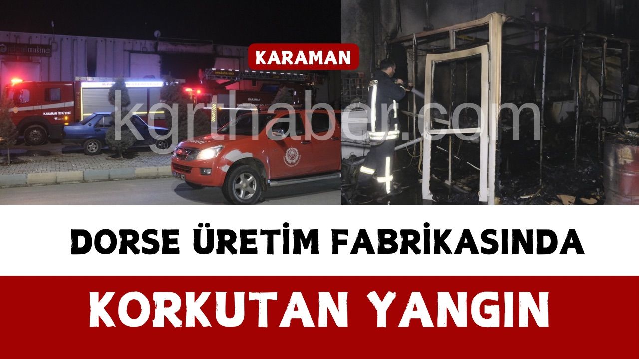 Yangın gece saat 01.00 sıralarında Organize Sanayi Bölgesi 1. Cadde’de faaliyet gösteren bir dorse üretim fabrikasında çıktı. Edinilen bilgiye göre, fabrikanın mutfak bölümünde henüz belirlenemeyen bir nedenle başlayan yangını fark edenlerin ihbarı üzerine adrese Organize Sanayi Bölgesi ve Karaman Belediyesi’ne bağlı itfaiye ekipleri sevk edildi. Kısa sürede olay yerine ulaşan ekipler, yangına müdahale ederek alevleri yaklaşık 1 saatlik çalışma sonucu kontrol altına alıp söndürdü. Fabrikadaki dumanları tahliye çalışmaları sırasında ekipler fabrikanın kapılarının açılmaması üzerine bir demir kapıyı kırarak dumanların tahliyesini sağladı. Yangında ölen ya da yaralanan olmazken, fabrikada maddi hasar meydana geldi. Yangının, mutfak bölümündeki elektrik arızasından kaynaklanmış olabileceği ihtimali üzerinde durulurken, yangınla ilgili tahkikat başlatıldı.