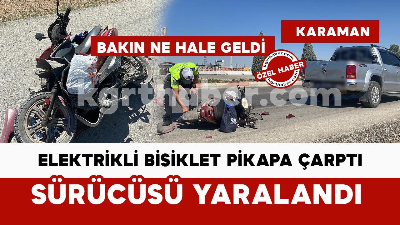 Kaza, ikindi saatlerinde Karaman-Konya yolu üzerinde meydana geldi. Edinilen bilgiye göre, sürücüsünün ismi öğrenilemeyen elektrikli bisiklet K.A.(50) idaresindeki 70 A* 7*9 plakalı Volkswagen marka pikapa arkadan çarptı. Çarpmanın etkisiyle elektrikli bisiklet kullanılamaz hale gelirken, sürücüsü yaralandı. İhbar üzerine kaza yerine sağlık ve polis ekipleri sevk edildi. Kazada yaralanan elektrikli bisiklet sürücüsü ambulansla Karaman Eğitim ve Araştırma Hastanesi’ne kaldırılarak tedavi altına alındı. Kazaya karışan elektrikli bisiklet çekiciyle yoldan kaldırıldı. Kazayla ilgili tahkikat başlatıldı.