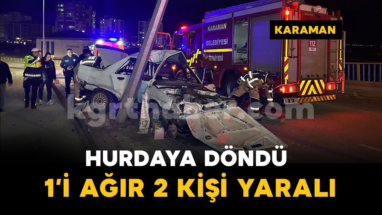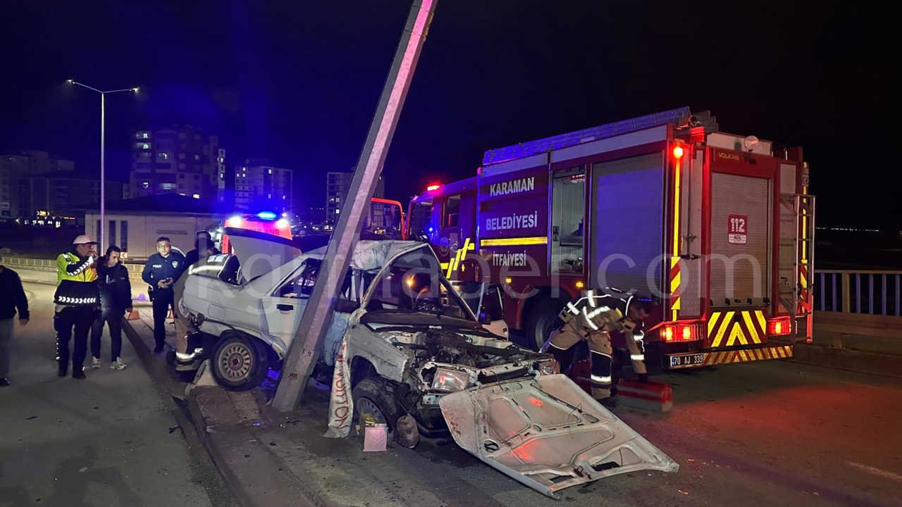 Kaza, saat 20.30 sıralarında Yenişehir Mahallesi Ertuğrul Gazi Bulvarı üzerindeki üst geçitte meydana geldi. Edinilen bilgiye göre, Mehmet B. (20) idaresindeki 70 B* 2*7 plakalı otomobil, sürücüsünün direksiyon hakimiyetini kaybetmesi sonucu kontrolden çıkarak refüjdeki aydınlatma direğine çarptı. Çarpmanın şiddetiyle otomobil hurdaya dönerken, sürücü Mehmet B. ile araçta yolcu olarak bulunan Burçin D. (19) isimli kadın yaralandı. İhbar üzerine olay yerine sağlık, itfaiye ve polis ekipleri sevk edildi. Araçta sıkışan yaralılar, itfaiye ekiplerinin çalışmasıyla bulundukları yerden çıkarılarak sağlık ekiplerine teslim edildi. Yaralılar, olay yerindeki ilk müdahalelerinin ardından ambulansla Karaman Eğitim ve Araştırma Hastanesi’ne kaldırıldı. Burada tedavi altına alınan yaralılardan Burçin D.’nin sağlık durumunun ağır olduğu öğrenildi.