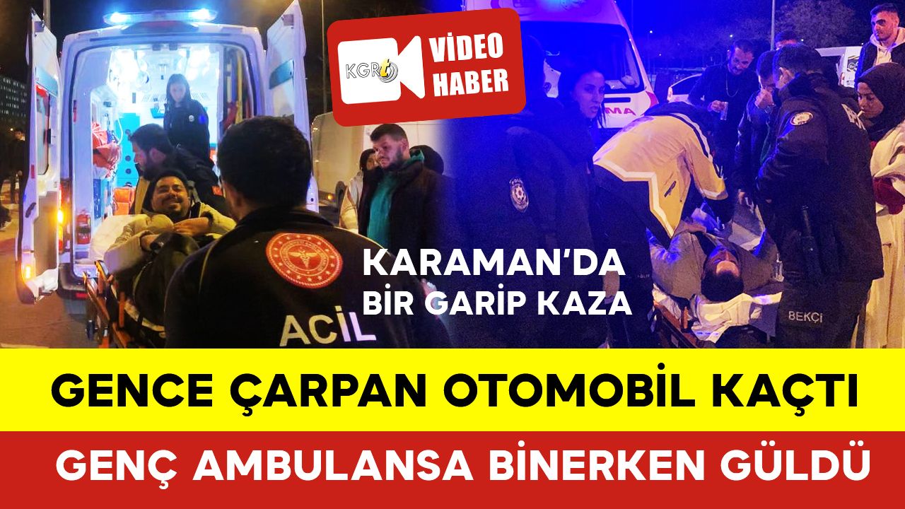Karaman'da akşam saatlerinde üniversite güzergahında meydana gelen kazada iddiaya göre, yolun karşısına geçmeye çalışan M.S.'ye otomobil çarptı kaçtı. Kazayı gören gençler durumu 112'ye bildirdi. İhbar üzerine olay yerine sağlık ve polis ekipleri sevk edildi. Kazada yaralanan gencin ambulansa bindirilirken gülmesi dikkatlerden kaçmazken yaralı genç ambulansla Karaman Eğitim ve Araştırma Hastanesi'ne kaldırıldı. Polis kazayla ilgili inceleme başlattı.