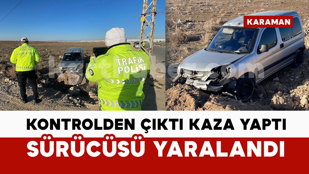 Kaza, saat 17.30 sıralarında Hamidiye Mahallesi Sanayi Caddesi üzerinde meydana geldi. Edinilen bilgiye göre, B.K. idaresindeki 70 A*P 6*3 plakalı Peugeot marka hafif ticari araç, sürücüsünün direksiyon hakimiyetini kaybetmesi sonucu kontrolden çıkarak yoldan çıktı. Kazada araç sürücüsü yaralandı. İhbar üzerine kaza yerine sağlık ve polis ekibi sevk edildi. Yaralı sürücü, olay yerindeki ilk müdahalesinin ardından ambulansla Karaman Eğitim ve Araştırma Hastanesi'ne kaldırılarak tedavi altına alındı.
