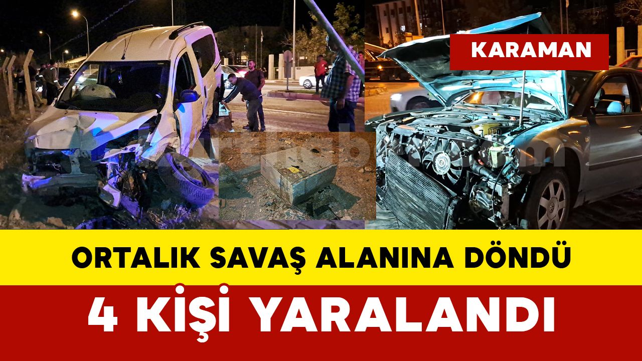 Kaza, akşam saatlerinde Şeyh Şamil Mahallesi 100. Yıl Bulvarı üzerinde meydana geldi. Edinilen bilgiye göre, M.T.A. idaresindeki plakası öğrenilemeyen Dacia marka hafif ticari araçla H.Ö. yönetimindeki 70 E* 0*5 plakalı Volkswagen marka otomobil kavşakta çarpıştı. Çarpışmanın etkisiyle hafif ticari araç kaldırıma savrularak elektrik panosunu devirdi. Kazada 70 EA 035 plakalı otomobilin sürücüsü H.Ö. ile birlikte 4 kişi yaralandı. İhbar üzerine kaza yerine sağlık ve polis ekibi sevk edildi. Kaza sebebiyle yol trafiğe kapatıldı. Kazada yaralananlar ambulanslarla Karaman Eğitim ve Araştırma Hastanesi’ne kaldırılarak tedavi altına alındı. Kazaya karışan araçlar çekiciyle yoldan kaldırılmasının ardından yol yeniden ulaşıma açıldı. Kazayla ilgili tahkikat başlatıldı.