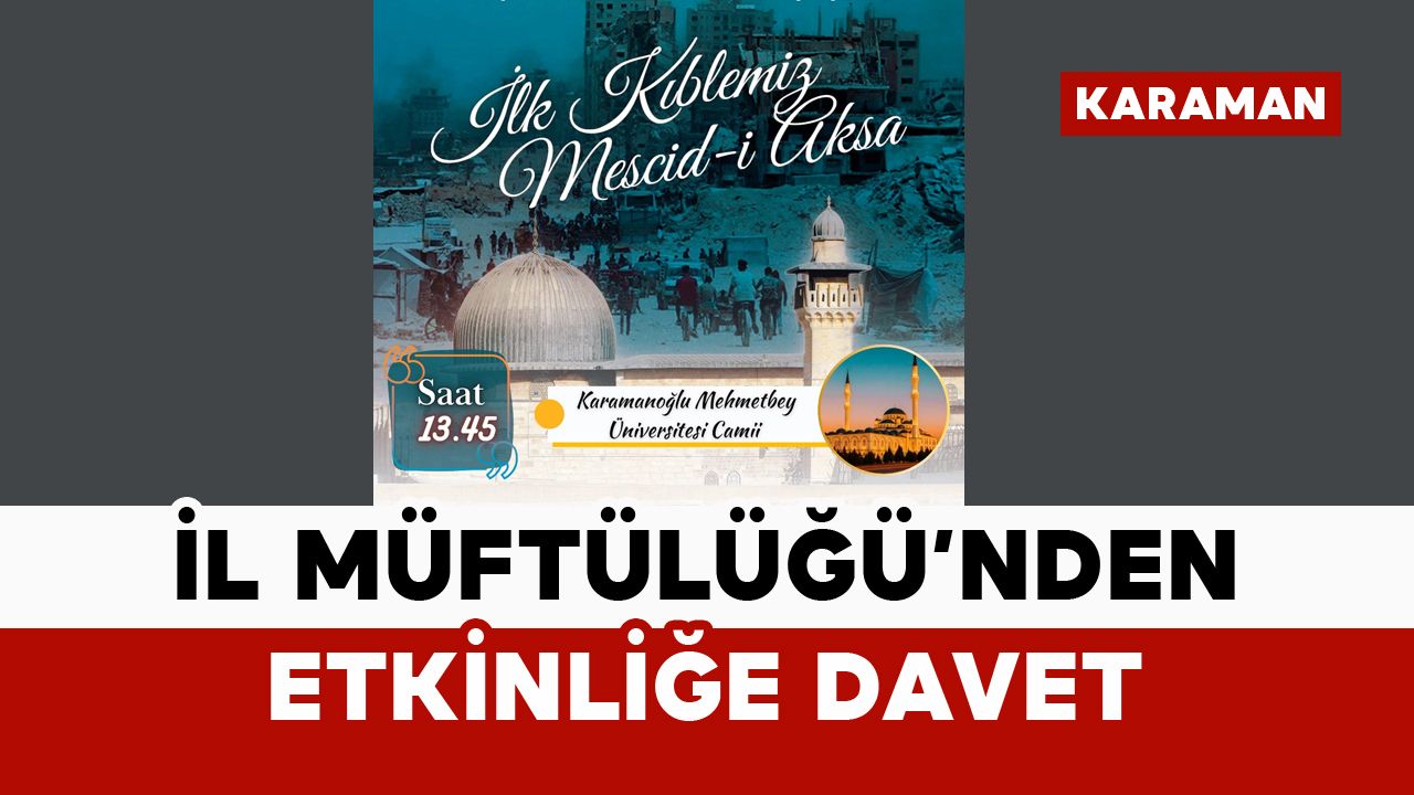 Etkinlik, 7 Ekim 2025 Salı günü saat 13.45’te Karamanoğlu Mehmetbey Üniversitesi Camiinde düzenlenecek. Program kapsamında basın açıklaması, sergiler ve farkındalık çalışmaları yer alacak. Karaman İl Müftülüğü’nden yapılan açıklamada, “Bu anlamlı günde, birlik ve beraberliğimizi göstermek, Mescid-i Aksa’ya destek olmak ve duyarlılığımızı ifade etmek için tüm halkımızı aramızda görmekten mutluluk duyarız” ifadelerine yer verildi.