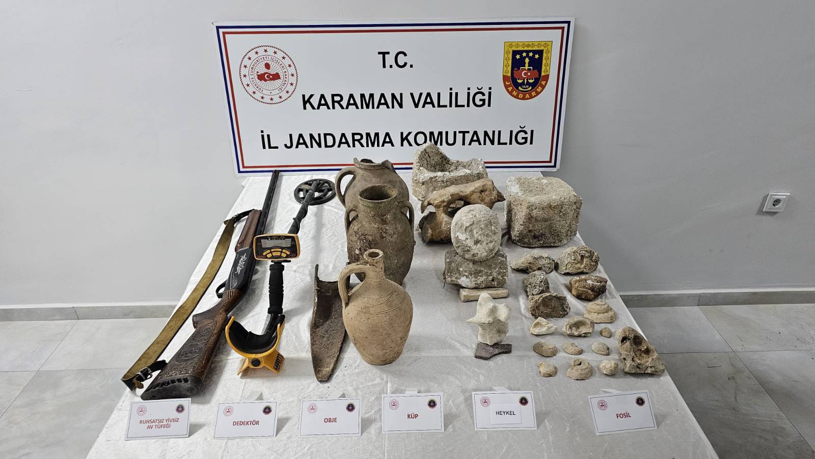 Edinilen bilgiye göre, Karaman İl Jandarma Komutanlığı ekipleri, ilçeye bağlı Kazancı beldesi Çatalbadem Mahallesi’nde oturan İ.A. isimli şahsın elinde bulunan tarihi eserleri satmak için müşteri aradığı yönünde bilgiye ulaşması üzerine çalışma başlattı. Ermenek Cumhuriyet Savcılığının koordinesinde harekete geçen ekipler, İ.A.’nın oturduğu ikametgâh ile bağ evinde arama yaptı.