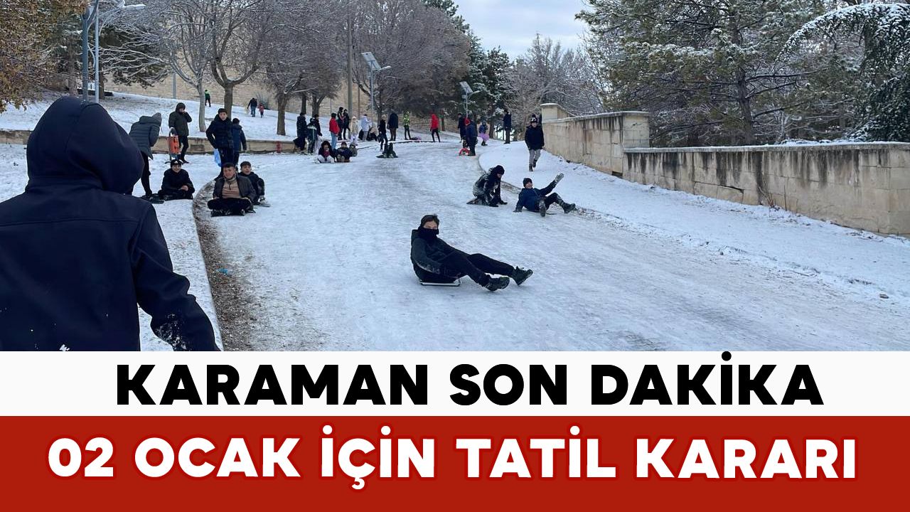 "İlimiz genelinde kar yağışı ve özellikle buzlanma/don tehlikesi nedeniyle 02 Ocak 2026 Cuma günü, Milli Eğitim Bakanlığına bağlı tüm resmi/özel örgün ve yaygın eğitim kurumları ile rehabilitasyon merkezlerinde eğitim ve öğretime 1 (bir) gün süre ile ara verilmiştir. Kamu kurumlarında görevli hamile ve engelli personel de 1 (bir) gün idari izinli sayılacaktır. Kamuoyuna saygıyla duyurulur.