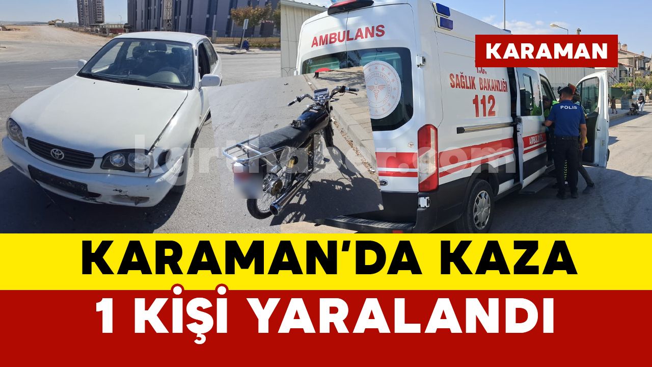 Kaza, ikindi saatlerinde Mümine Hatun Mahallesi Şehit Hamza Çetin Caddesi üzerindeki kavşakta meydana geldi. Edinilen bilgiye göre, C.A.D. yönetimindeki 70 A*T 7*6 plakalı motosikletle H.G. idaresindeki 06 H* 8*3 plakalı Toyota marka otomobil kavşakta çarpıştı. Çarpışmanın etkisiyle savrulan motosiklet sürücüsü yaralandı. İhbar üzerine kaza yerine sağlık ve polis ekibi sevk edildi. Kazada yaralanan motosiklet sürücüsü ambulansla Karaman Eğitim ve Araştırma Hastanesi’ne kaldırılarak tedavi altına alındı. Kazayla ilgili tahkikat başlatıldı.