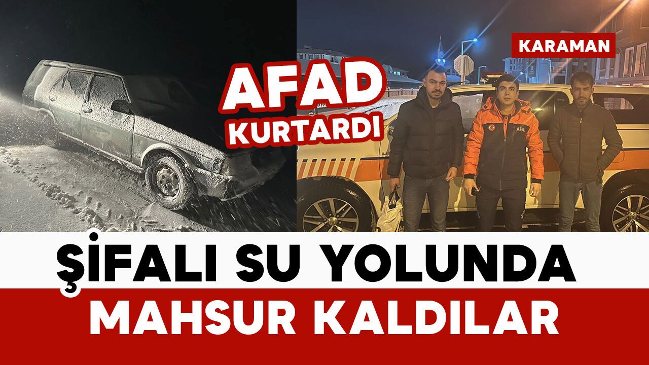 Olay, akşam saatlerinde Gülere köyü yakınlarındaki Mara yolu Şifalı Su mevkisinde meydana geldi. Edinilen bilgiye göre, bölgede etkili olan kar yağışı nedeniyle bir aile araçlarıyla yolda mahsur kaldı. Ailenin durumu 112 Acil Çağrı Merkezi’ne bildirmesi üzerine Karaman Afet ve Acil Durum Yönetimi Müdürlüğü’ne (AFAD) bağlı arama ve kurtarma ekibi bölgeye sevk edildi. Kısa sürede olay yerine ulaşan ekipler, mahsur kalan vatandaşları bulundukları noktadan alarak güvenli alana nakletti. Ailenin sağlık durumunun iyi olduğu öğrenildi.