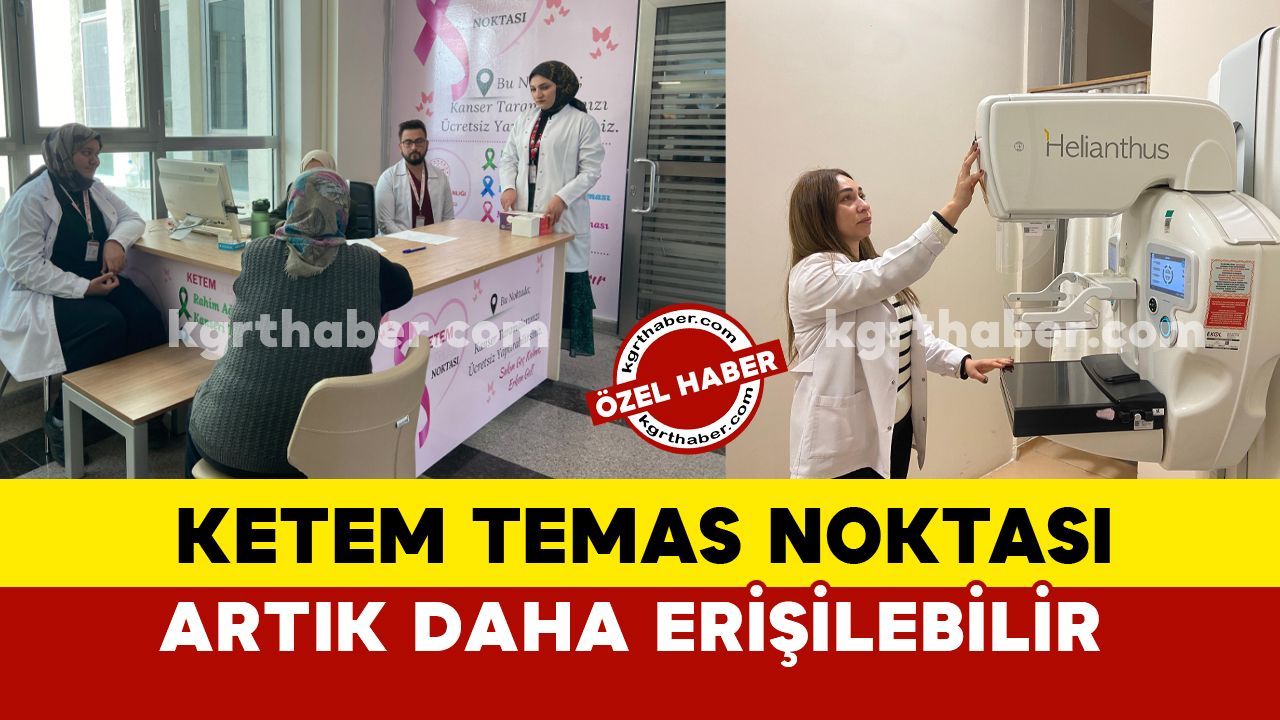 Kadın hastalıkları ve doğum poliklinikleri içerisinde yer alan KETEM Temas Noktası odasında 30-65 yaş aralığındaki kadınlara HPV-DNA testi yapılmakta, zemin katta bulunan USG kayıt, röntgen odalarının bulunduğu radyolojik görüntüleme bölümünde 40-69 yaş aralığındaki kadınlara da mamografi çekimleri yapılıyor.