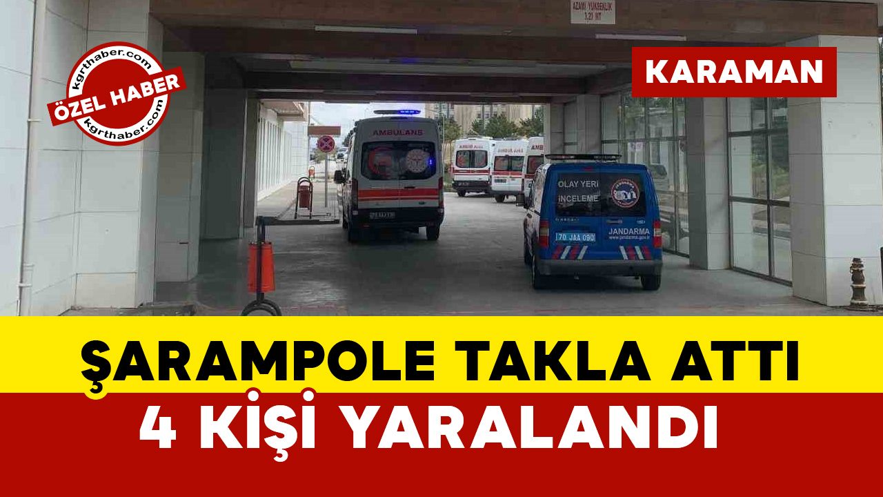 Kaza, geçtiğimiz günlerde merkeze bağlı Göztepe köyü yolunda meydana geldi. İddiaya göre, T.K. yönetimindeki 70 A* 99* plakalı araç sürücüsünün direksiyon hakimiyetini kaybetmesi sonucu şarampole takla attı. Kazada araçta bulunan biri bebek 4 kişi yaralandı. İhbar üzerine kaza yerine sağlık ve jandarma ekipleri sevk edildi. Kazada yaralananlar ambulanslarla Karaman Eğitim ve Araştırma Hastanesi’ne kaldırılarak tedavi altına alındı. Kazayla ilgili tahkikat başlatıldı.