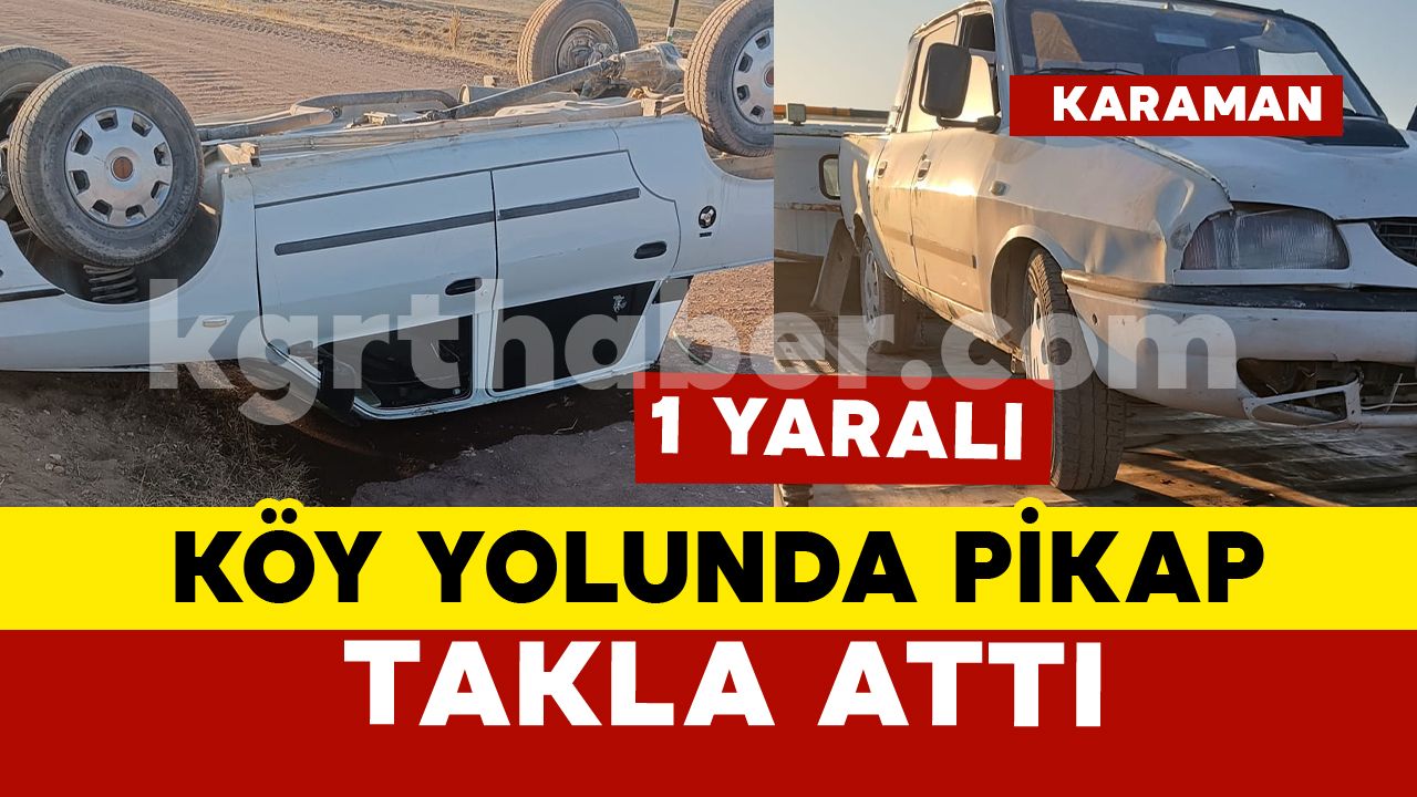 Kaza, ikindi saatlerinde merkeze bağlı Güldere köyü yakınlarında meydana geldi. Edinilen bilgiye göre, F.F. yönetimindeki 33 L* 3*7 plakalı Dacia marka pikap sürücüsünün direksiyon hakimiyetini kaybetmesi sonucu kontrolden çıkarak takla attı. İhbar üzerine kaza yerine sağlık ve jandarma ekipleri sevk edildi. Kazada yaralanan sürücü ambulansla Karaman Eğitim ve Araştırma Hastanesi’ne kaldırılarak tedavi altına alındı. Kazayla ilgili tahkikat başlatıldı.