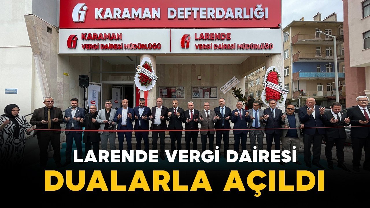 Karaman Defterdarlığı bünyesinde hayata geçirilen ve Ayrancı, Başyayla ile Kazımkarabekir ilçelerine bağlı mükelleflere hizmet verecek olan yeni vergi dairesi, Defterdarlık hizmet binasının birinci katında faaliyet gösterecek. Larende Vergi Dairesi Müdürlüğü açılışına Karaman Valisi Hayrettin Çiçek başta olmak üzere il protokolü katıldı. Yapılan duanın ardından kesilen kurdele ile birimin açılışı gerçekleştirildi. Törene katılan protokol üyeleri, yeni hizmet biriminin Karaman’a ve bölge mükelleflerine hayırlı olması temennisinde bulundu.