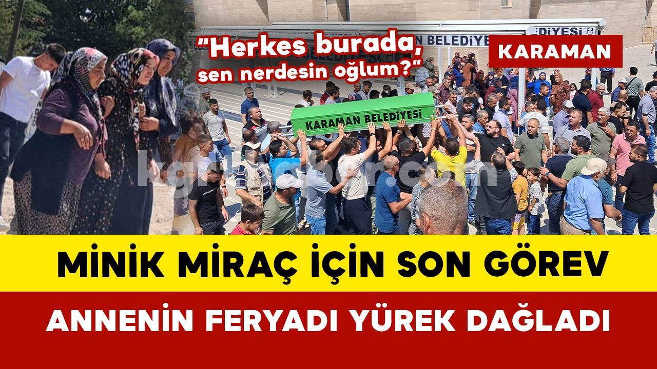 Miraç’ın cenazesi, Karaman Eğitim ve Araştırma Hastanesi morgunda yapılan otopsinin ardından sabah saatlerinde ailesine teslim edildi. Saat 11.00’de Ahmet Yesevi Camii’nde kılınan cenaze namazı sonrası minik Miraç’ın cenazesi Şehir Mezarlığı’nda gözyaşları içinde toprağa verildi. Cenazenin toprağa verilmesinin ardından Miraç’ın 5 yaşındaki abisi, arkadaşları ve yakınları kabrine su döktü. Cenazeye küçük çocuğun yakınları ve vatandaşlar katıldı. Cenazenin defnedilmesinin ardından anne Meryem Taşer, “Herkes burada, sen nerdesin oğlum?” diyerek ağıt yaktı.