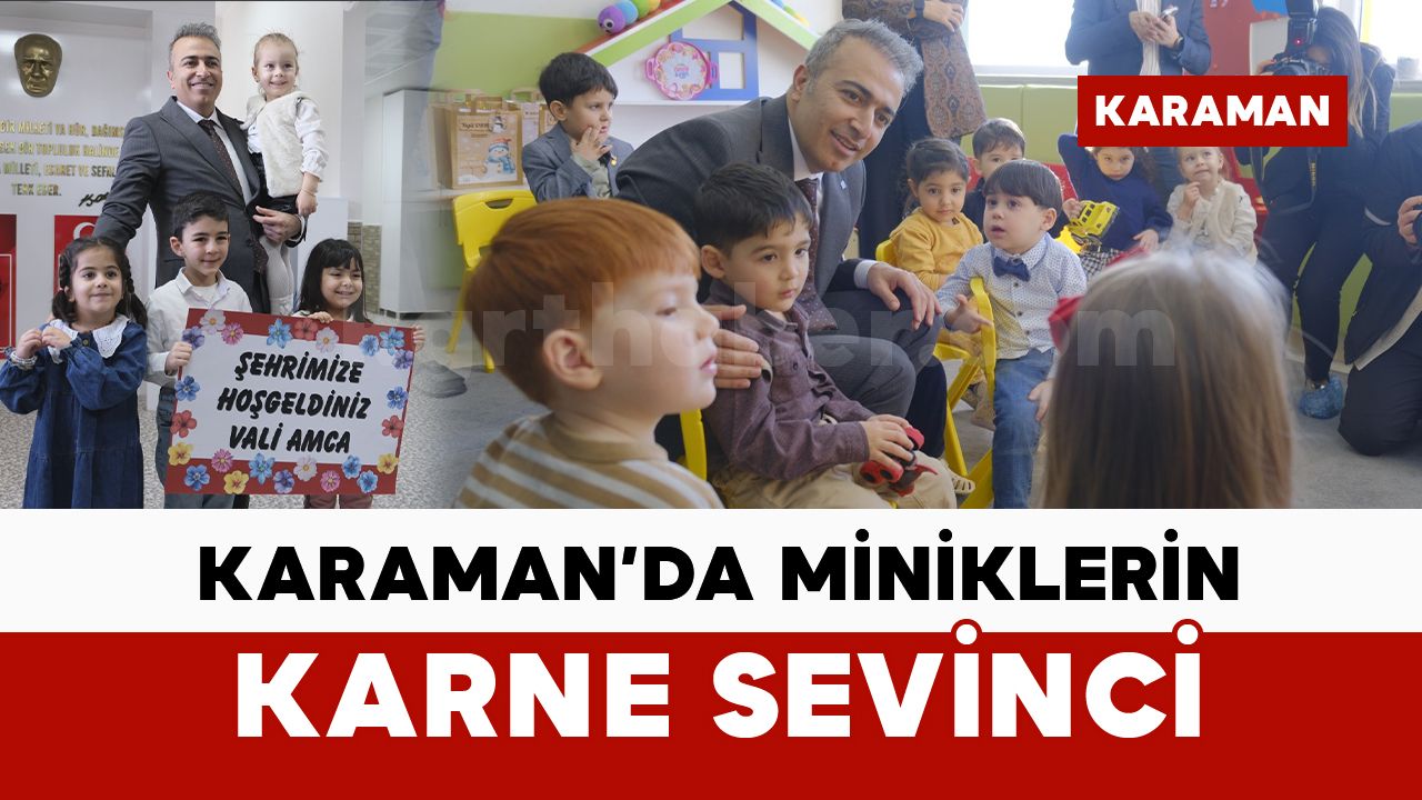 Karne dağıtım programı kapsamında Yenişehir Anaokulu’nda düzenlenen törene Karaman Valisi Hayrettin Çiçek katıldı. 3–6 yaş aralığında 120 öğrencinin eğitim gördüğü, 6 sınıftan oluşan okulda düzenlenen törende Vali Çiçek, öğrencilere karnelerini vererek başarılar diledi. Öğrencilerle sohbet eden Çiçek, çocuklara büyüyünce ne olmak istediklerini sordu. Gelecekte hayal ettikleri meslekleri anlatan minik öğrencilerle Vali Çiçek arasında samimi görüntüler oluştu. Karnelerini ve hediyelerini alan çocuklar mutluluklarını dile getirdi.