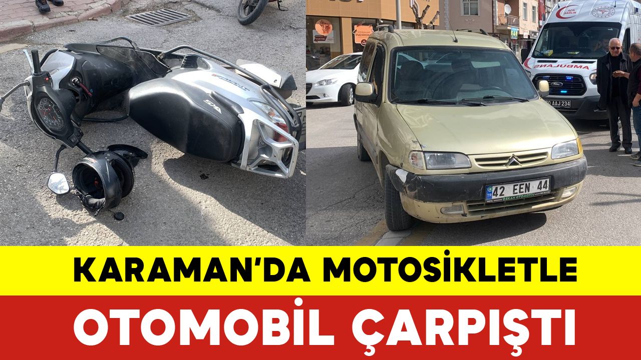 Karaman’da Fenari Mahallesi’nde meydana gelen olayda edinilen bilgiye göre, Kemal Kaynaş Caddesi’nde seyir halinde olan motosiklet ile 297. Sokaktan gelmekte olan E.C. idaresindeki otomobil çarpıştı. İhbar üzerine olay yerine sağlık ve polis ekipleri sevk edildi. Kazada yaralanan motosiklet sürücüsü ambulansla Karaman Eğitim ve Araştırma Hastanesi’ne kaldırıldı. Polis kazayla ilgili inceleme başlattı.