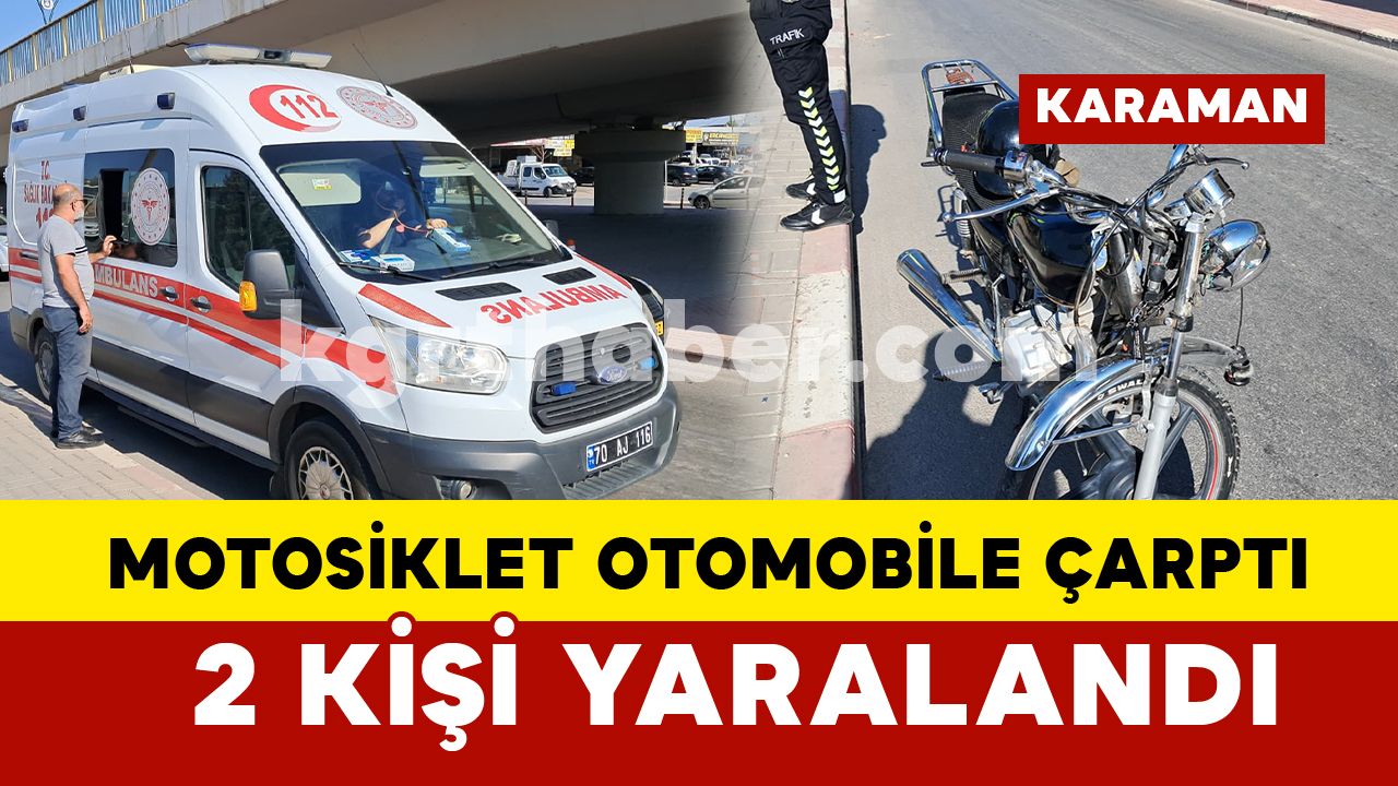 Kaza, sabah saatlerinde Kırbağı Mahallesi İbrahim Öktem Caddesi üzerinde meydana geldi. İddiaya göre, sürücüsünün ismi henüz öğrenilemeyen 70 E* 1*8 plakalı motosiklet Ş.E. yönetiminde seyir halinde olan 70 D* 6*0 plakalı otomobile arkadan çarptı. Çarpışmanın etkisiyle devrilen motosikletteki 2 kişi yaralandı. İhbar üzerine olay yerine sağlık ve polis ekibi sevk edildi. Kazada yaralananlar ambulansla Karaman Eğitim ve Araştırma Hastanesi’ne kaldırılarak tedavi altına alındı. Kazayla ilgili tahkikat başlatıldı.